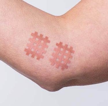 De pleisters werken via acupunctuurpunten en energiebanen. Het rasterpatroon helpt om blokkades op te heffen en de energiestroom in balans te brengen. Ik plaats de pleisters gericht op specifieke punten, afhankelijk van je (pijn) klacht of behoefte.